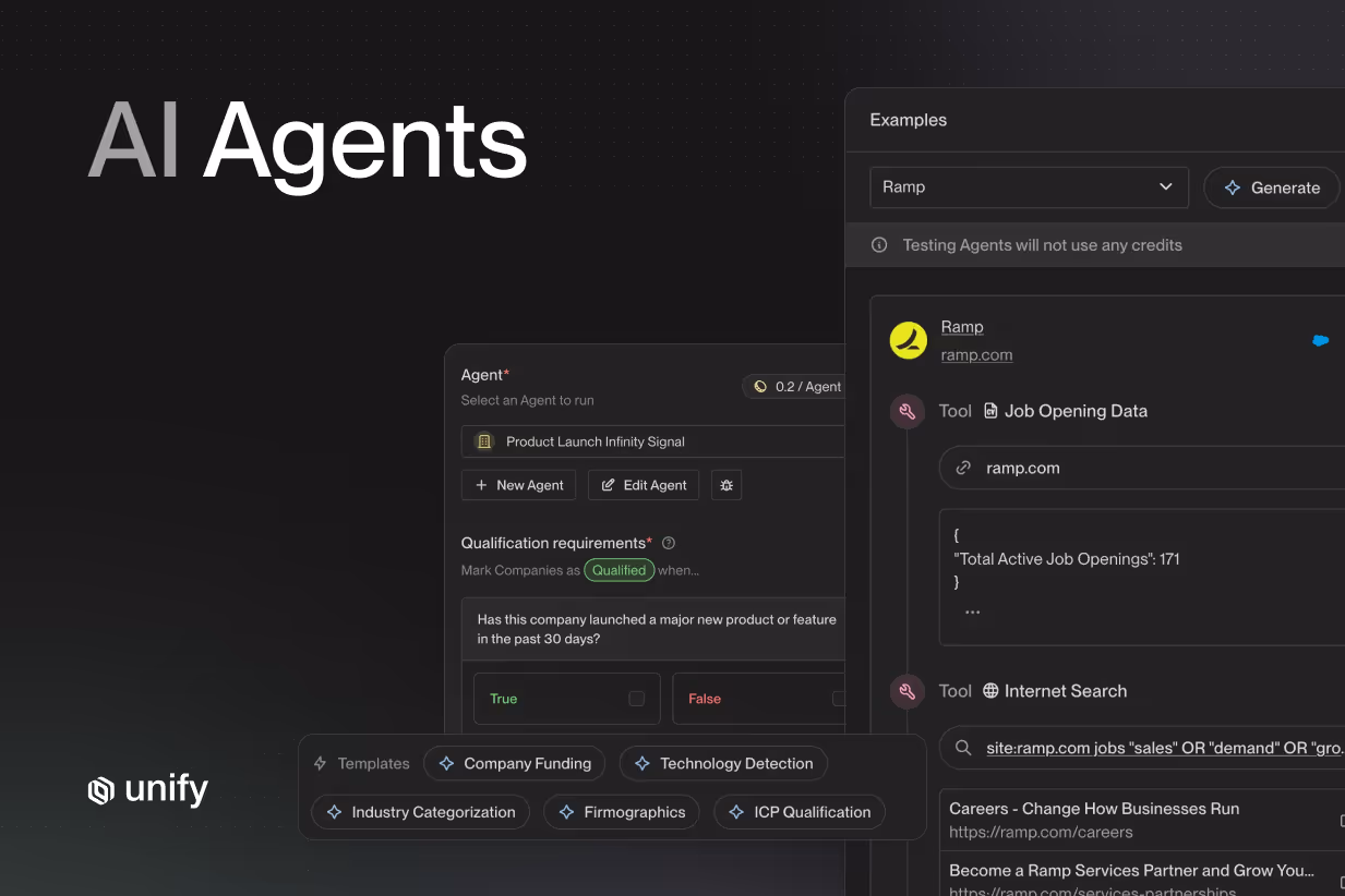 Here at Unify, we are building the world's first system-of-action for revenue teams that automates repetitive work and empowers sellers to focus on the highest leverage tasks. Our first mission: automate outbound sales. Last year, we introduced AI Agents to start solving these tasks. We designed our Agents to mold to customers’ needs, knowing that no one understands the most relevant questions and signals better than they do. In just a few months, our Agent has been used to answer over 1 million questions.