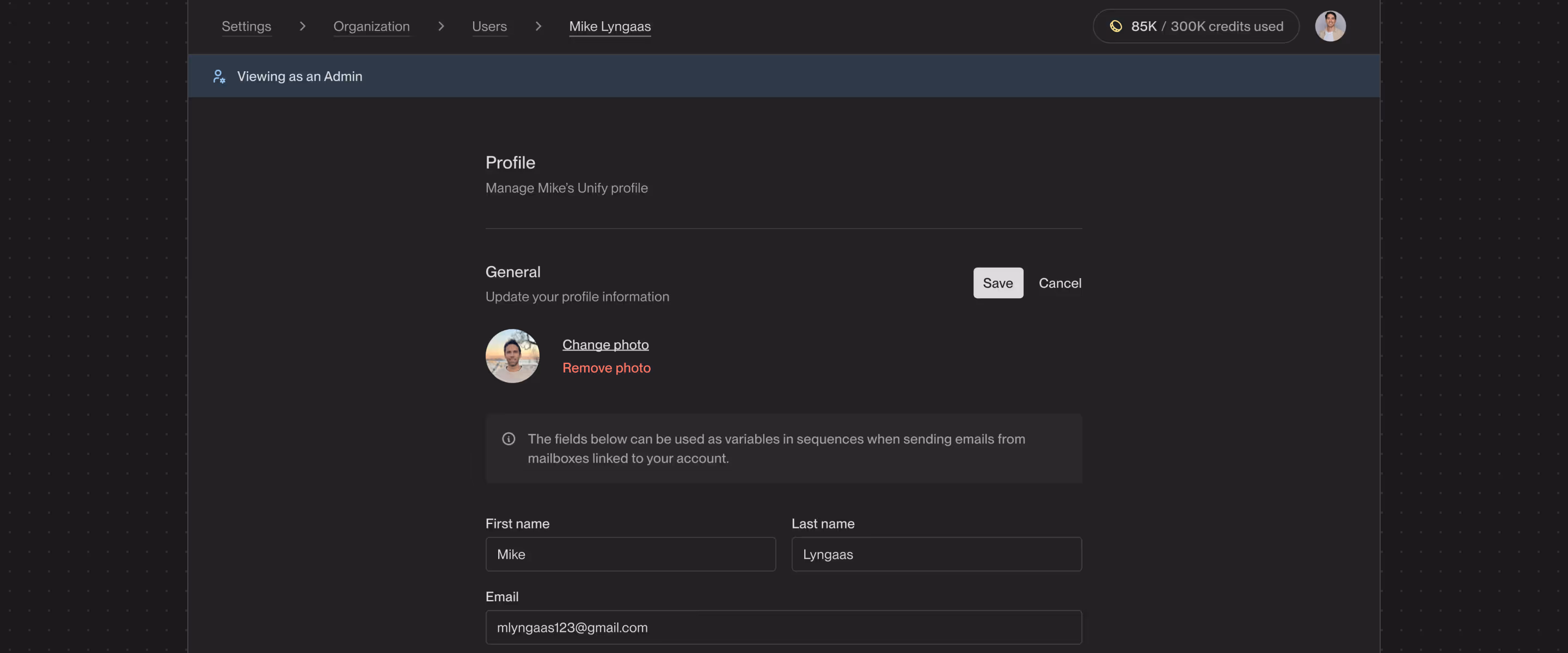Admins on Unify can now update key contact information, booking links, and email inbox signatures on behalf of their Reps. This will save time orchestrating outbound on behalf of your team, and help ensure your messaging and branding is consistent across Reps.