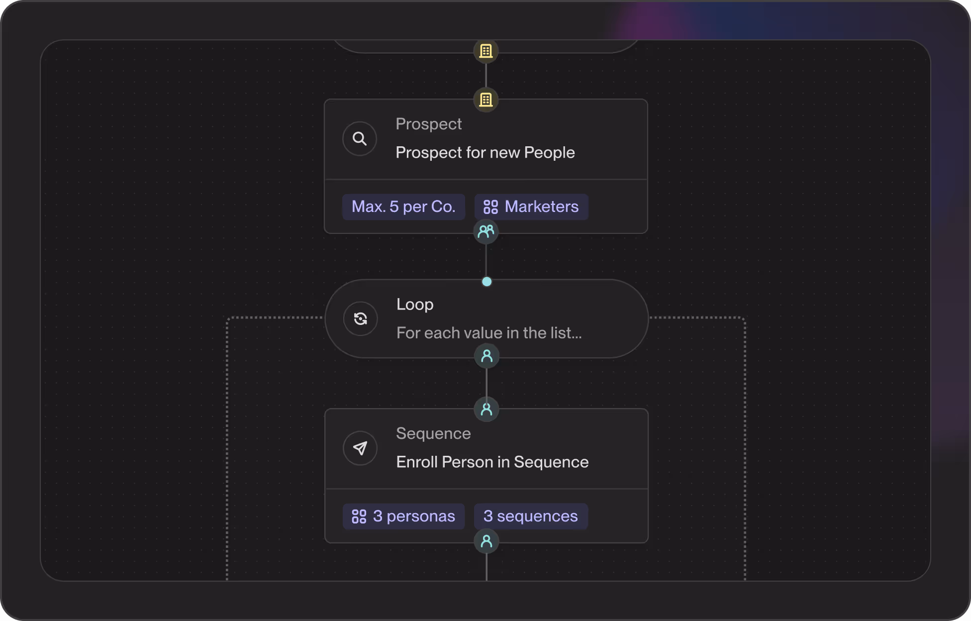 Automated outbound is a systematized method of engaging prospects using workflows powered by signals, automation, and AI. Rather than relying solely on manual outreach, it automates the repetitive aspects of outbound such as surfacing intent signals, account qualification and research, finding and enriching ICP contacts, and writing personalized sequences.