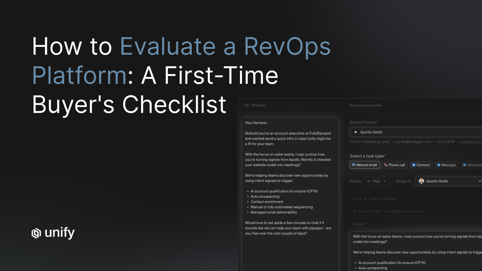 Warm outbound revolves around more than just a name or a token personalization—it’s about delivering relevant, valuable messaging at the perfect time for buyers. If you’re ready for next steps, reach out to learn how Unify streamlines the entire process—from identifying buyer intent and sending personalized messages to tracking the metrics that matter most. Book a demo here.